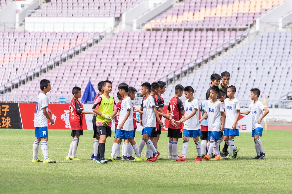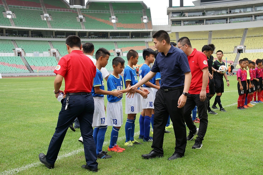 比赛前双方进行握手礼,让球员从小懂得尊重对手;