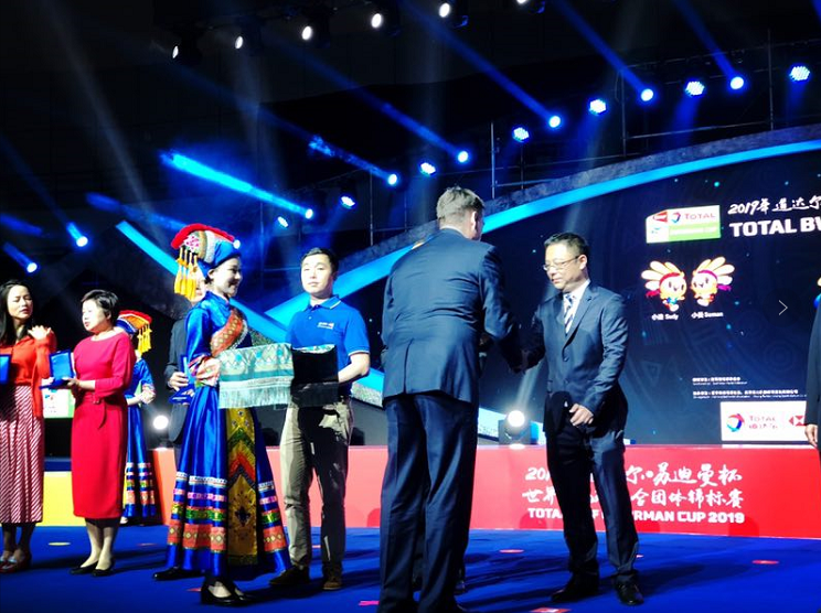 (2019苏迪曼杯颁奖现场,pg电子网页版入荣获“世界羽联贡献奖”)