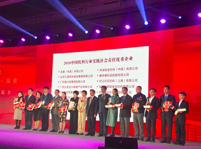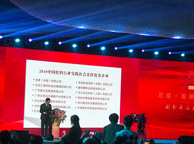 【概要描述】11月17日-18日 中国饮料工业协会(中饮协)成立25周年纪念大会暨2018年会在北京举行相关主管部门领导、中饮协协会领导、行业专家企业代表和媒体汇聚一堂一起探讨中国饮料行业改革创新和可持续发展的未来大会期间“2018饮料行业实践社会责任优秀企业奖”获奖名单正式揭晓【pg电子网页版入荣誉上榜】(pg电子网页版入董事长叶红汉先生在现场上台接受领奖)该奖项每5年评选一次考核维度涵盖经营诚信、科技创新、环境保护节能减排、